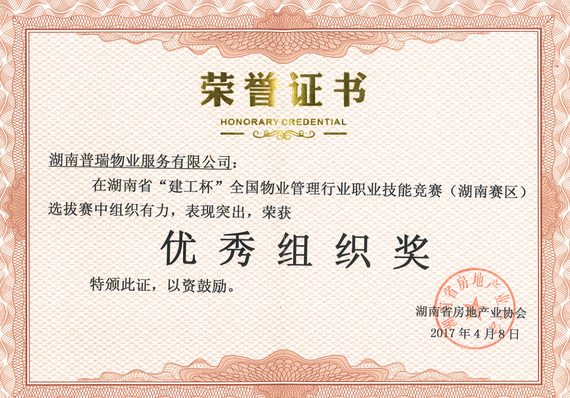 2017年度省“建工杯”行业职业技能竞赛优秀组织奖