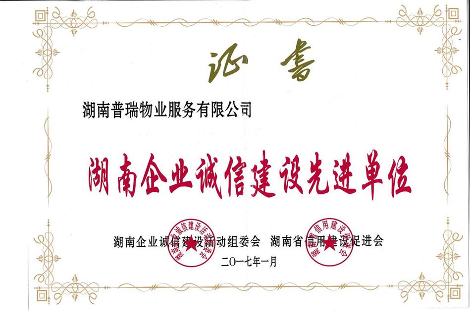 1月11日,由中共湖南省委宣传部和湖南省工商行政管理局指导、湖南省守合同重信用企业协会和湖南省信用建设促进会联合主办的湖南省第四届企业诚信建设主题活动暨国家级、省级“守重”企业、诚信示范市场、诚信百强品牌、诚信企业授牌大会在长沙召开,近400家湖南企业参加会议,经活动组委会和专家的严格评审及声誉检测结果,江南娱乐下载再次被授予“湖南诚信企业”、“湖南企业诚信建设先进单位”荣誉称号,并在湖南日报上予以公示。