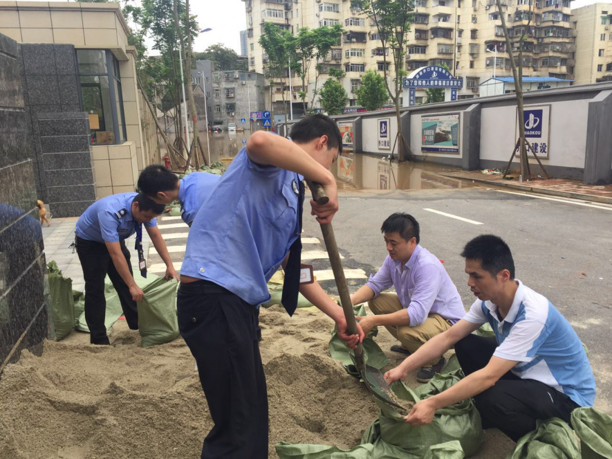 自6月30日起,长沙连日暴雨,整个城区防洪抗灾形势严峻。面对突如其来的险情,我公司各项目在做好物业服务的同时,积极帮助业主开展防汛救灾工作。7月1日晚,国家开发银行湖南省分行项目附近街道发生管涌内涝,瞬间项目部进水约50CM。项目总经理唐亚鸣第一时间启动防汛救灾紧急预案,整晚,防汛小队在唐亚鸣总经理与安全部吴浩经理的带领下,各司其职地在暴雨中开展防汛救灾工作,包括填装抗洪沙袋、清扫疏通安全通道、拉网式隐患排查,加固防汛安全墙等。由于长沙城区水位一直居高,内涝一时之间无法排除,为业主能够出行顺畅,更是展开生产自救,在西边灌木丛中开辟出一条新的应急通道供业主临时通行。同时继续加强巡视与排查,安排专人24小时轮班值守,以确保业主财产安全。