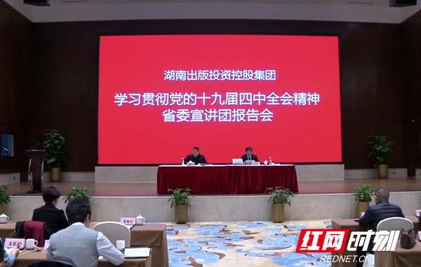 红网时刻11月26日讯(记者 潘锦)11月26日,学习贯彻党的十九届四中全会精神省委宣讲团报告会在湖南出版投资控股集团举行。湖南省委宣讲团团员、省文联党组成员、副主席邓清柯以《“中国之治”的制度“密码”》为题,宣讲党的十九届四中全会精神。湖南出版投资控股集团党委书记、董事长、总编辑,中南传媒董事长龚曙光主持报告会。